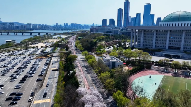 Spring Day in Yeouido with Cherry Blossoms in Full Bloom