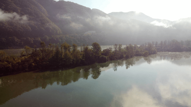 Mountain and foggy river scenery