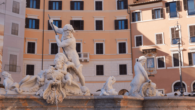 Fountain at Lenin Square in front of historical buildings on a cloudy day