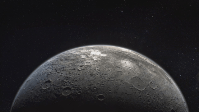 우주에서 본 별이 빛나는 하늘에 둘러싸인 달