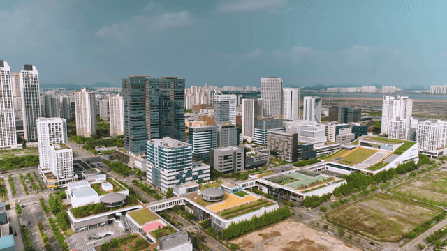 고층 빌딩과 녹지가 있는 공원이 어우러진 도시 경관