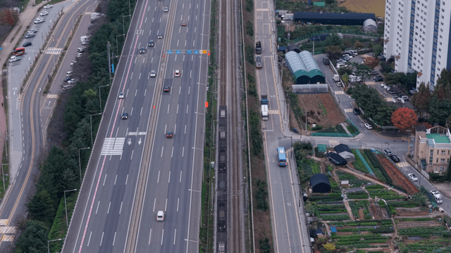 차량이 있는 고속도로와 철도