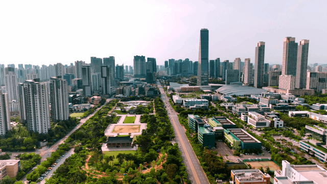 고층 빌딩과 녹지가 있는 공원이 어우러진 도시 경관
