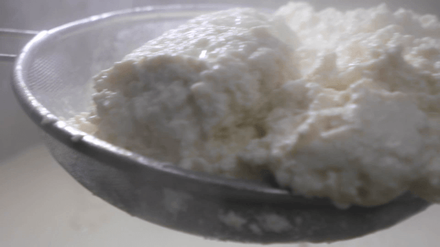 커다란 솥에서 삶은 메주콩을 준비하는 빨간 고무장갑을 낀 손