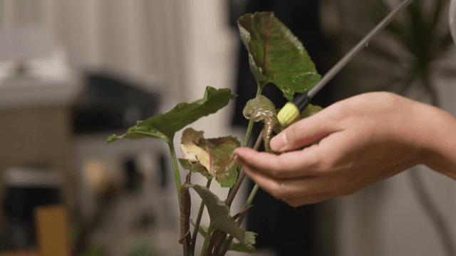 식물 꼬투리를 검사하는 모습