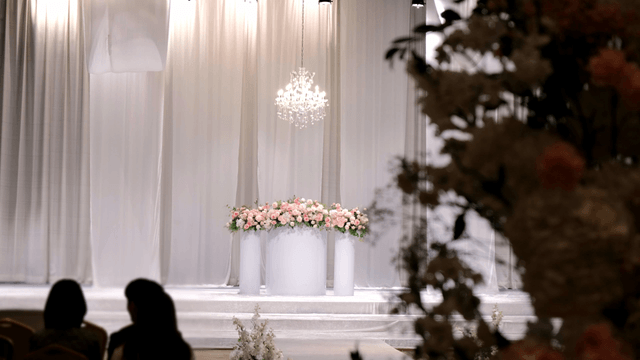 어둡게 조명된 결혼식장 우아한 샹들리에