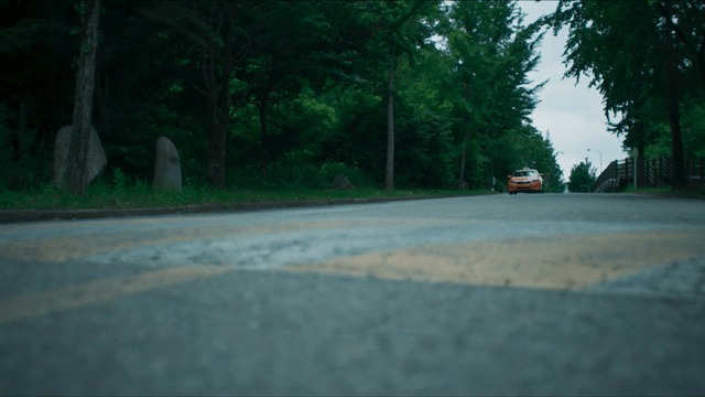 아름다운 숲길을 운전하는 모습