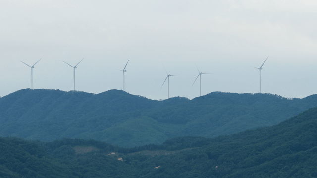 푸른 산 위의 풍력 터빈