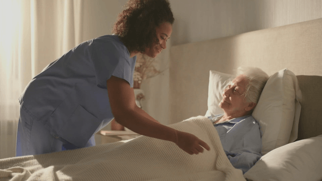 병실에서 의사와 간호사로부터 건강상태를 확인받는 환자의 시점