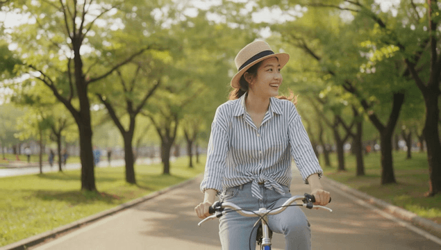 햇살이 비치는 공원에서 데이트를 즐기는 여성
