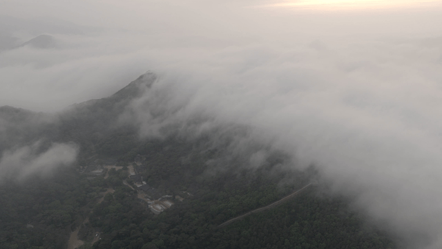 짙은 안개가 낀 산