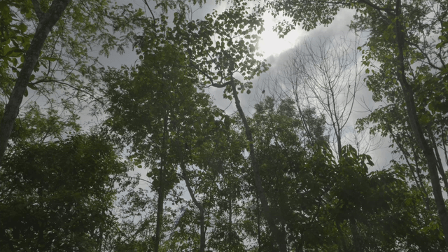 빽빽한 숲 속 나뭇잎 사이로 비치는 햇살