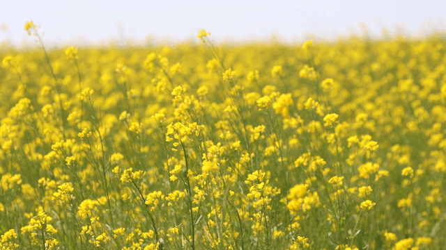 산들바람에 부드럽게 흔들리는 노란 유채꽃밭