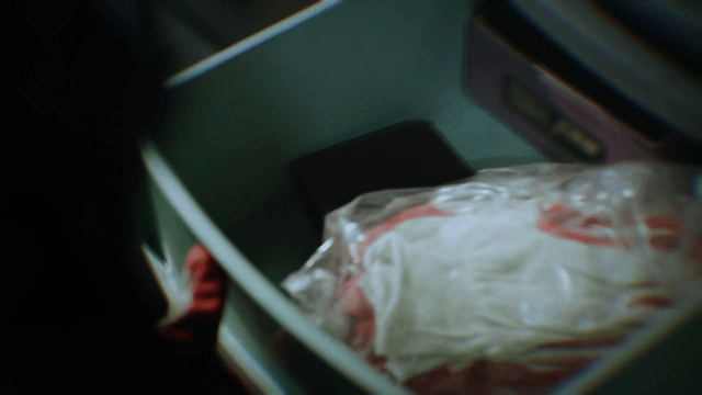 어두운 창고에서 가방을 뒤지는 사람