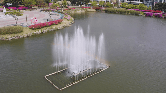놀이터와 산책로가 있는 공원의 항공 뷰