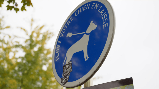 햇살이 비치는 공원에서 개를 산책하는 사람