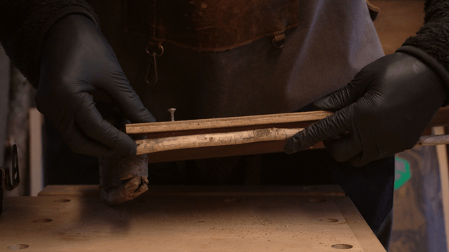 햇빛이 비치는 작업장에서 목공예를 하는 장인