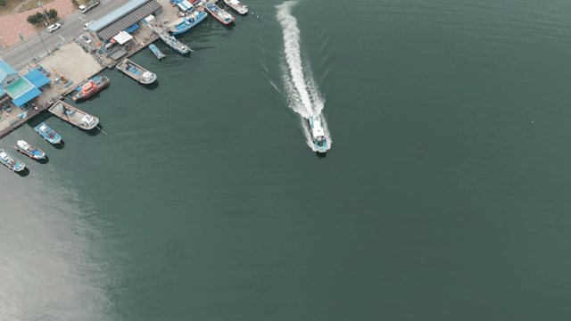 분주한 항구의 어선과 부두