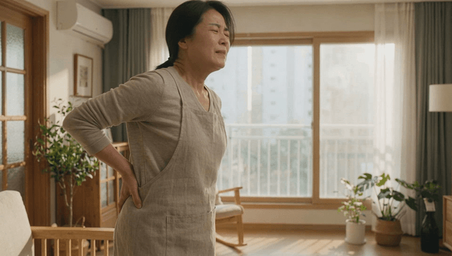 허리 통증으로 고통받는 소파에 누워있는 여성