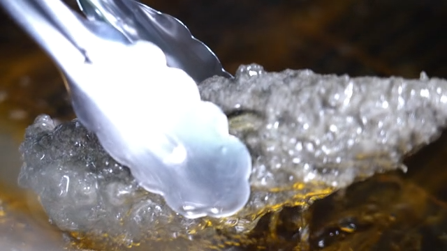 펄펄 끓는 뜨거운 기름에 노릇노릇 튀겨지는 생선 튀김