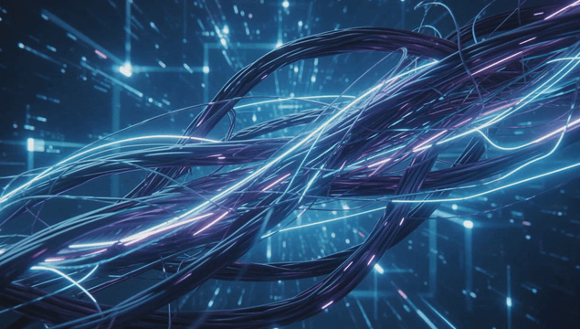빛나는 네트워크 케이블이 있는 데이터 센터