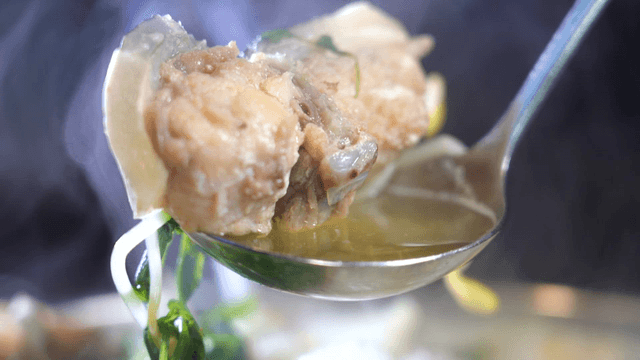 콩나물이 들어간 부대찌개를 저어주는 국자
