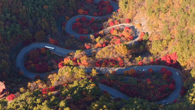 구불거리는 도로와 가을 단풍 산