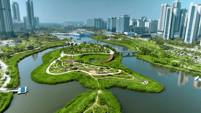녹지와 밀집한 건물이 공존하는 도시 전경