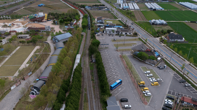 농촌 농지를 지나는 기차