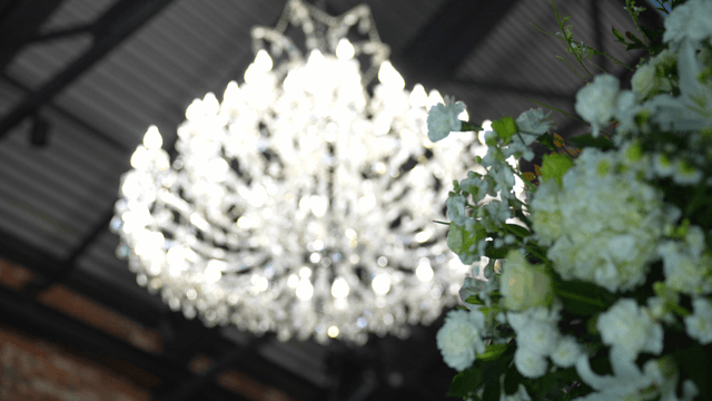 우아한 샹들리에와 화려한 꽃 장식