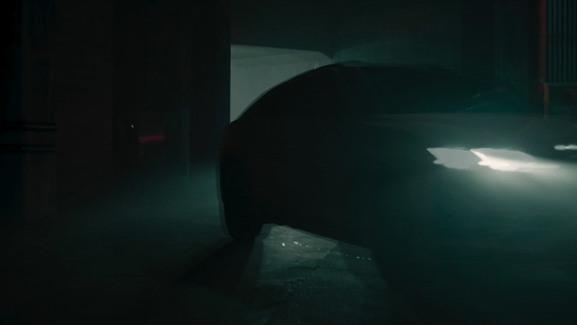 어두운 지하 주차장을 빠르게 들어오는 자동차