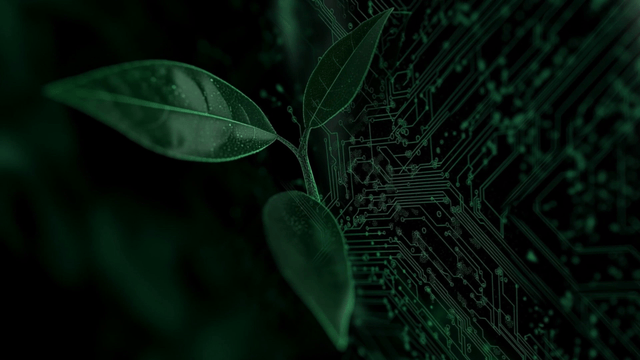 디지털 회로 패턴이 있는 잎사귀