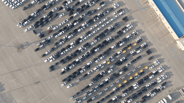 차량으로 가득 찬 대형 중고차 센터
