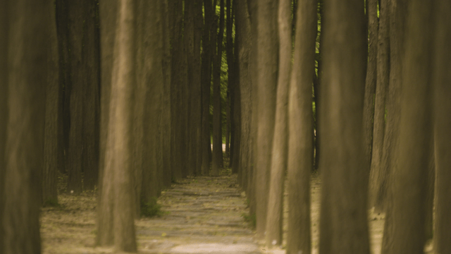 맑은 하늘과 높은 나무가 있는 고요한 공원