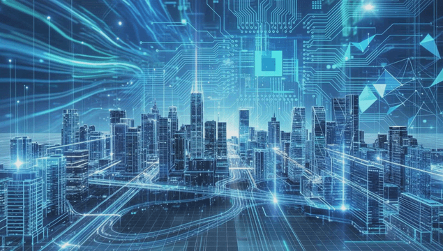 숫자와 이미지가 떠 있는 디지털 인터페이스