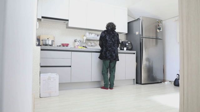 주방에서 트레이에 옮겨 가득 담아지는 갓김치