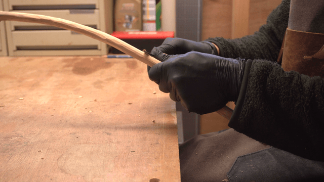 장인이 끌로 나무 조각의 구멍을 만드는 모습