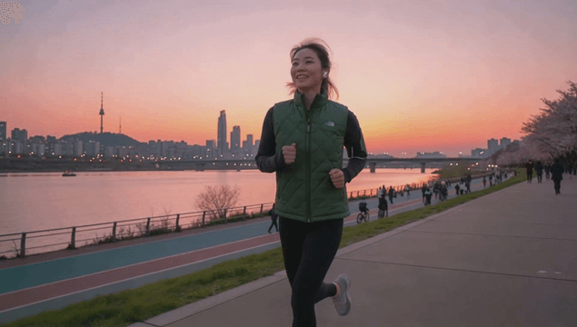 해질녘 이어폰을 끼고 강변을 달리는 여성