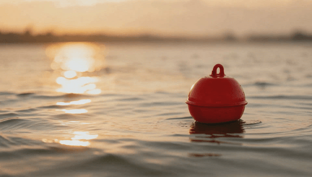 석양이 지는 붉은 하늘 아래 평온한 바다