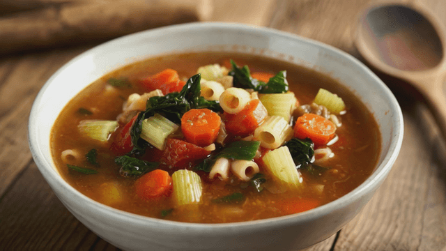 파스타가 들어간 야채 미네스트로네 수프 한 그릇