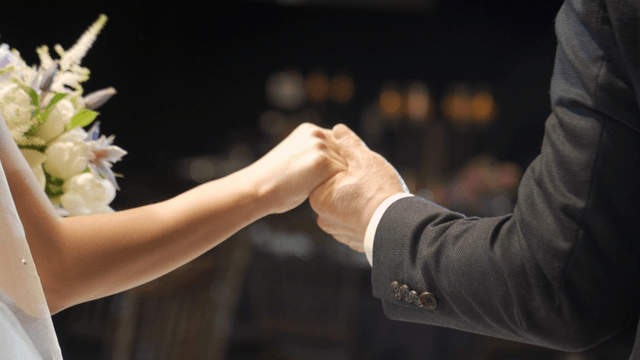 결혼식에서 손을 잡고 있는 커플