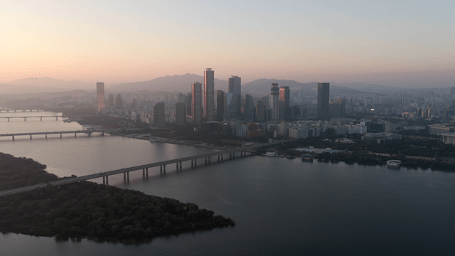 한강 옆 높은 건물이 있는 서울 도시 전경