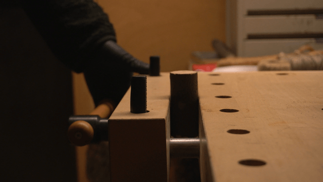 작업대에서 도구를 사용해 제단하는 목공 작업