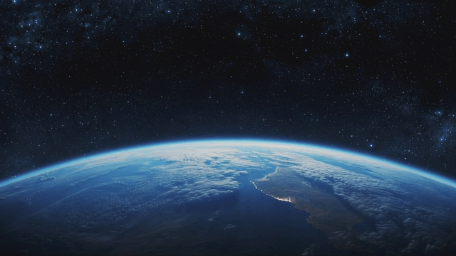 우주에서 본 별이 빛나는 하늘에 둘러싸인 달