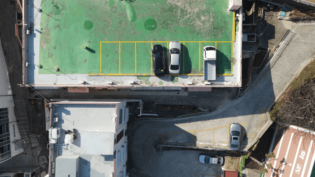 주차장과 옥상이 보이는 주택 건물