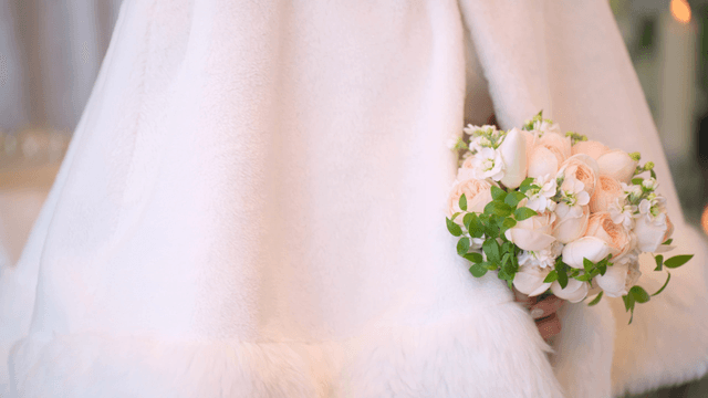 꽃을 든 신부와 어머니가 손을 잡고 있는 모습