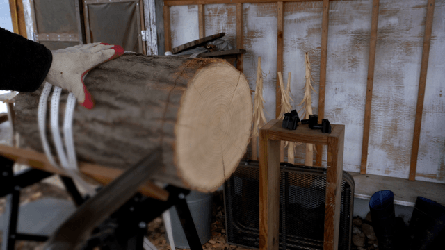 작업장에서 통나무를 다루는 장인