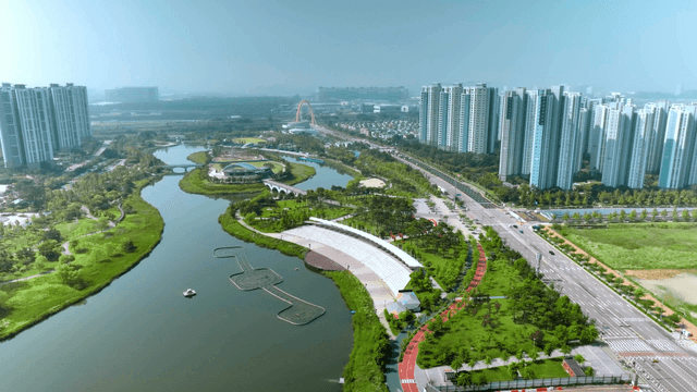 푸른 녹지와 현대적인 도시 풍경