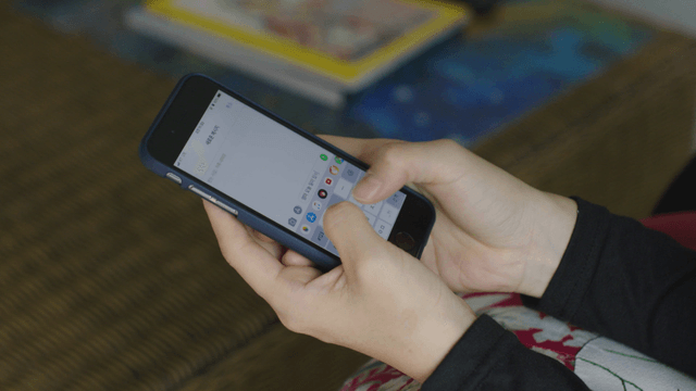 스마트폰 문자 내용을 확인하는 사람