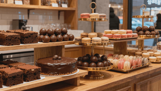 예쁘게 전시된 달콤한 초콜릿 과자